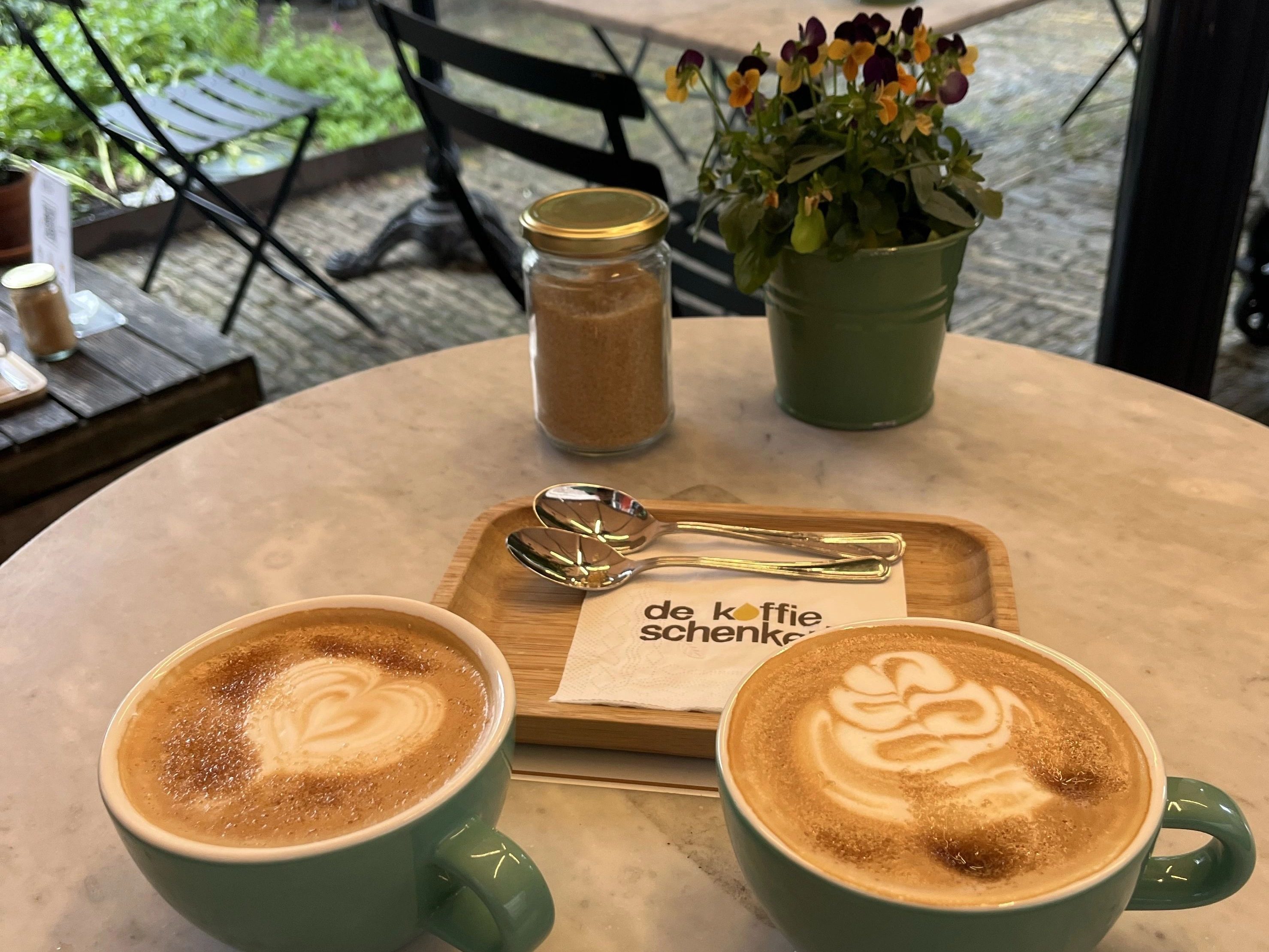 There is a queue so we go get a nearby coffee, De Koffieschenkerij